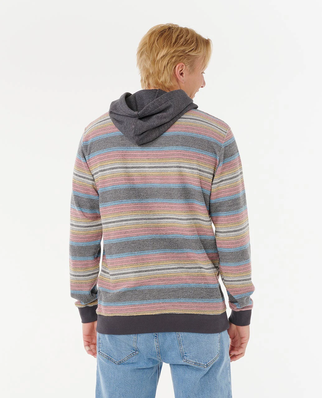The Surf Revival Heritage Hood features soft Yd Reverse Terry 285G fabric and a standard fit, finished with a reverse yarn dye stripe and ribbed trims. A kangaroo pocket and woven label round out this timeless piece for cooler beach days.
