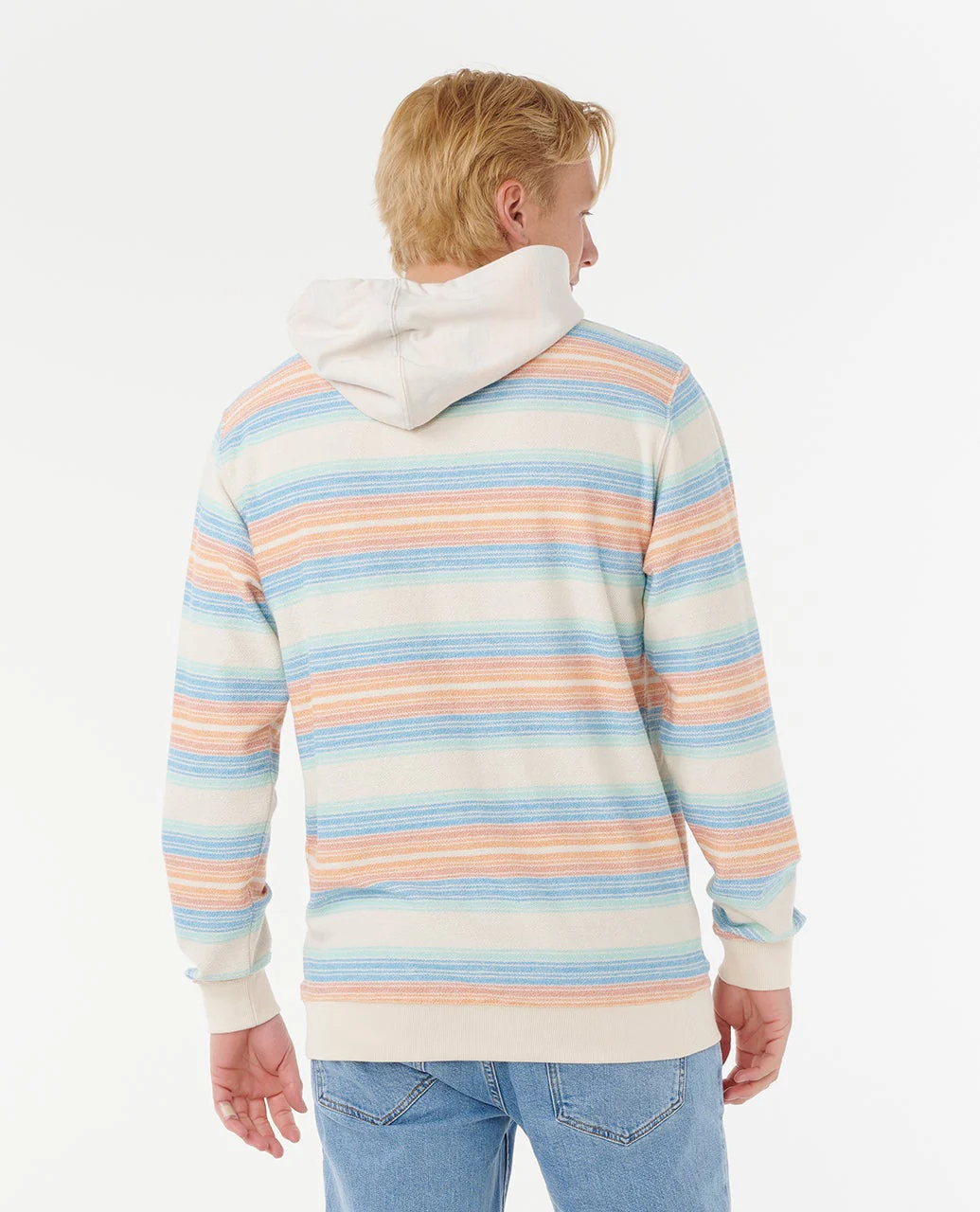 The Surf Revival Heritage Hood features soft Yd Reverse Terry 285G fabric and a standard fit, finished with a reverse yarn dye stripe and ribbed trims. A kangaroo pocket and woven label round out this timeless piece for cooler beach days.